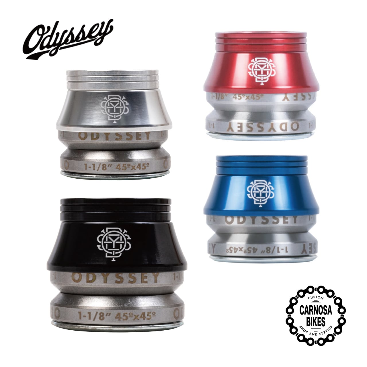 15mm高のコニカル(円錐形状)トップカバーがセットされたインテグレイテッドヘッドセット。高品質のシールドベアリングを使用。トップカバーと同色のスペーサーが2枚(2mm, 3mm)付属、高さの微調整が可能です。