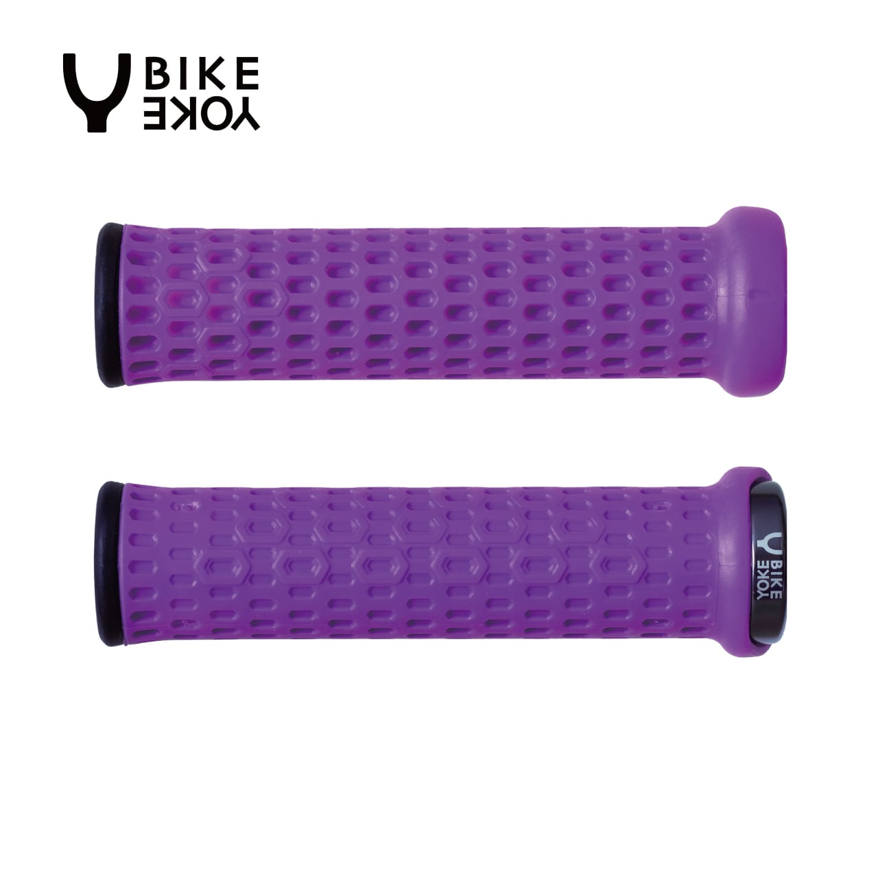 Grippyは円形の直径を持ちながら、中央の軸からオフセットされています。通常、薄いグリップはより強固で優れた機械的グリップを可能にし、厚いグリップはより減衰と快適性を与えます。オフセットされたデザインは、グリップの直径を大きくすることなく、ライダー側に向かうグリップの後方側(パーム側)に、より多くのダンピングを必要とする場所を作り出しました。