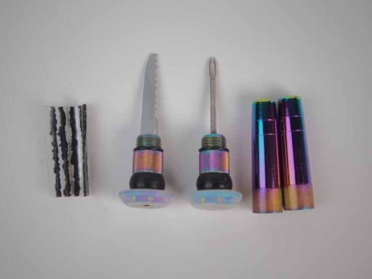 バーエンドの両端に忍ばせていつでも常備することができるパンクチャープラグツール。