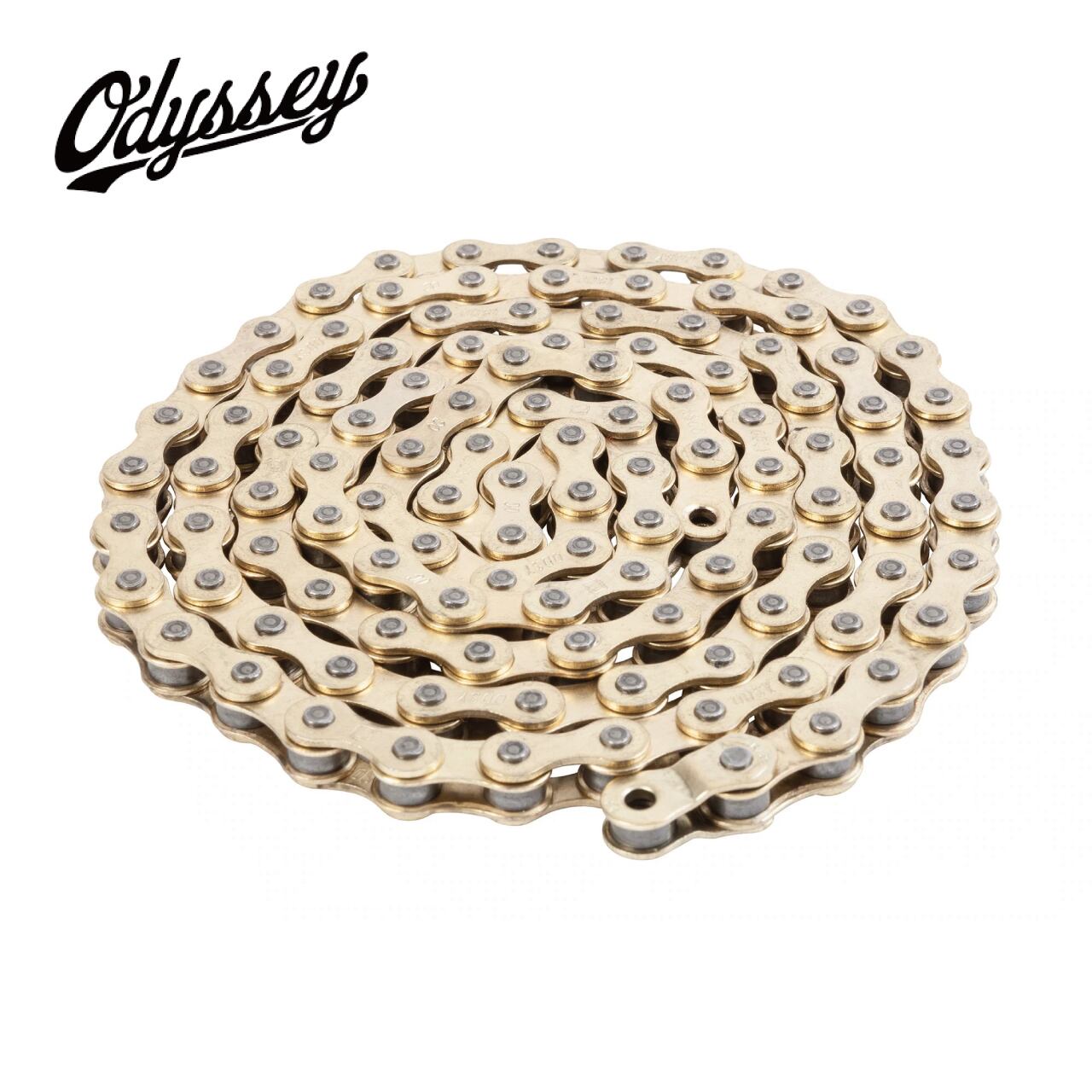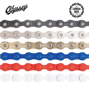 ODYSSEYの高剛性のBMXチェーン。BMX定番チェーンのKMC 510-HXチェーンがベースですが、ハーフリンクが付属しており、微調整も容易になっています。